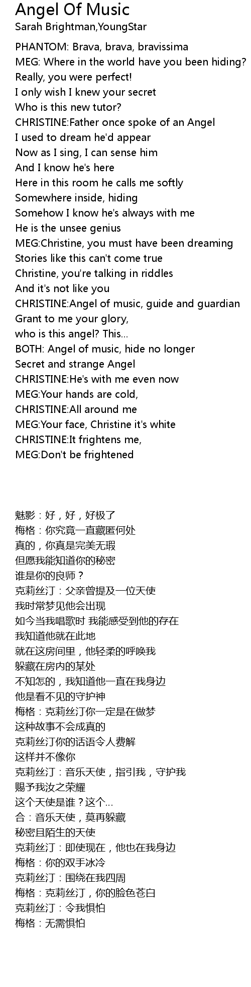 BOTH: Angel of music, hide no longer |