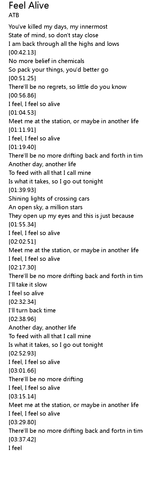 | [03:23.14] | I feel, I feel so alive |
