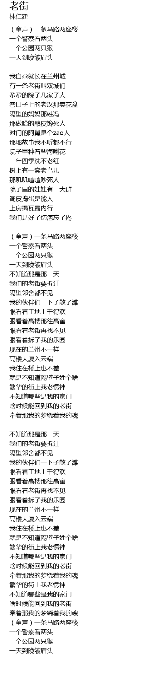 | [01:30.28] | 我们的老街要拆迁 |