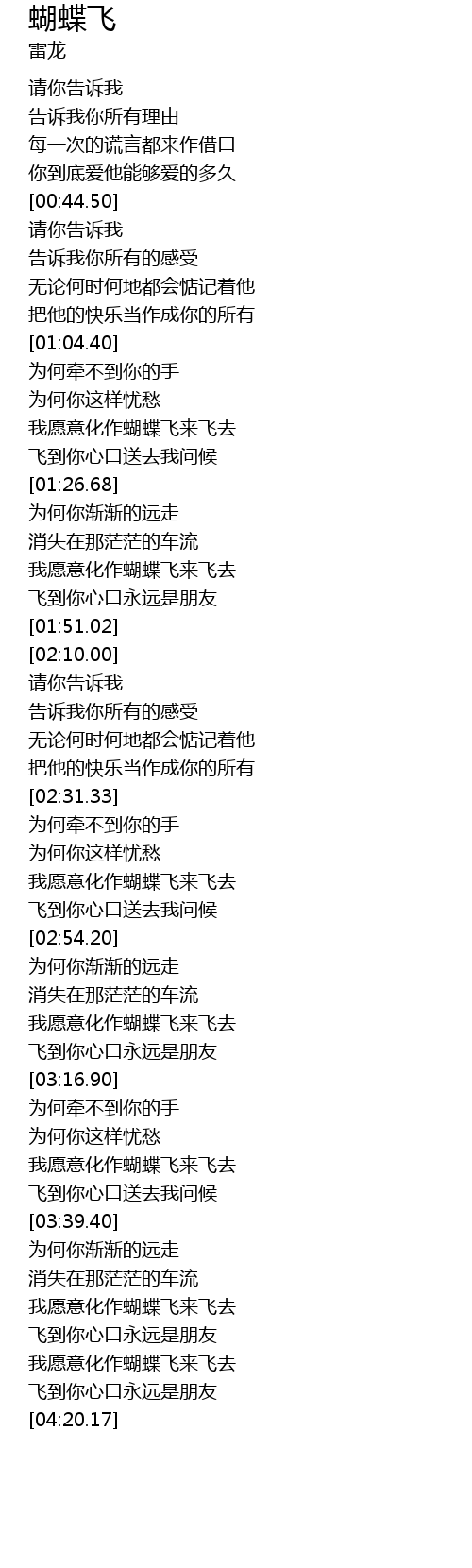 | [01:38.20] | 我愿意化作蝴蝶飞来飞去 |