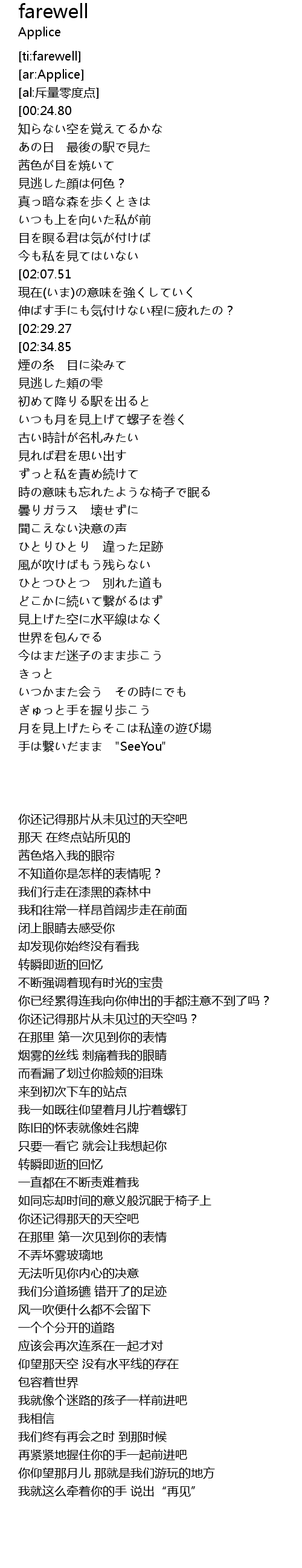 | [04:11.92] | 手は繋いだまま "SeeYou" |