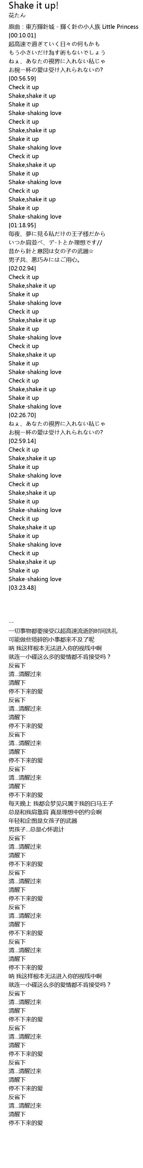 | [00:05.00] | 原曲:東方輝針城 - 輝く針の小人族 Little Princess |