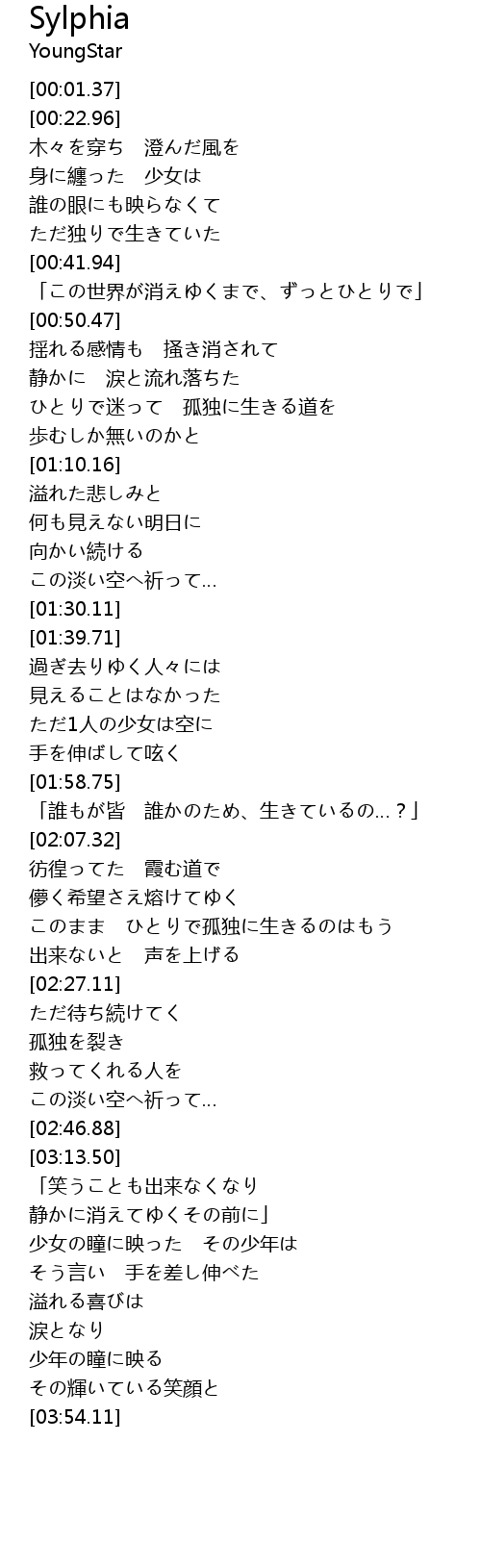 | [00:42.74] | 「この世界が消えゆくまで、ずっとひとりで」 |
