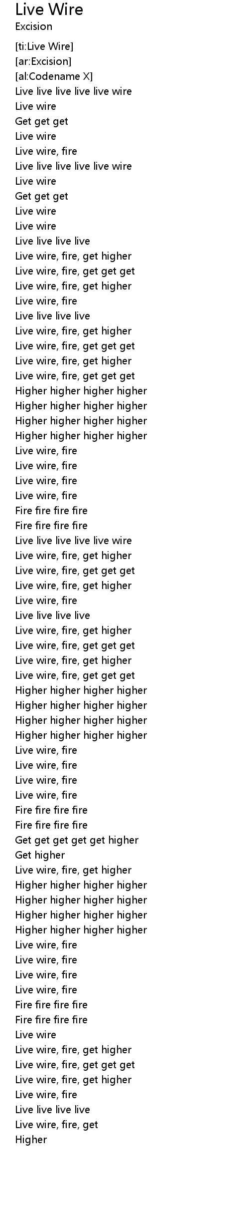 [00:43.74] Live wire, fire, get higher