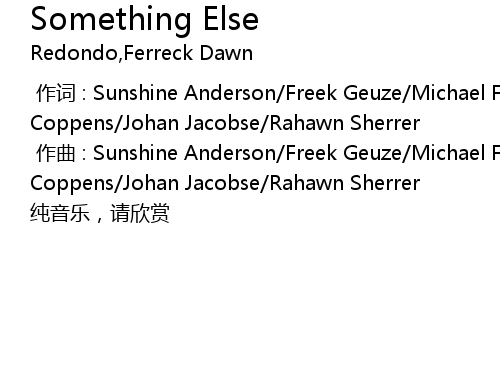 | [00:01.000] | zuo qu : Sunshine Anderson Freek Geuze Michael Flowers Freek Coppens Johan Jacobse Rahawn Sherrer |