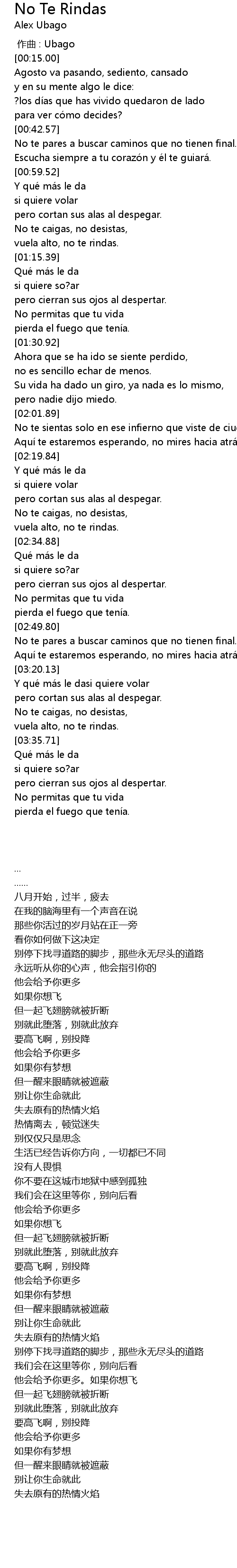 | [00:45.06] | No te pares a buscar caminos que no tienen final. |