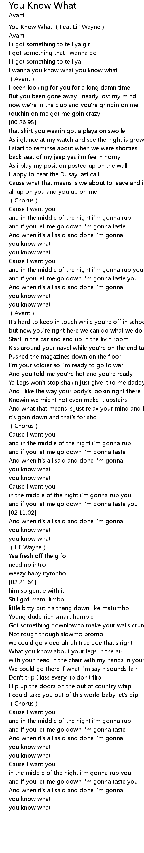 | [00:02.61] | You Know What Feat Lil' Wayne |