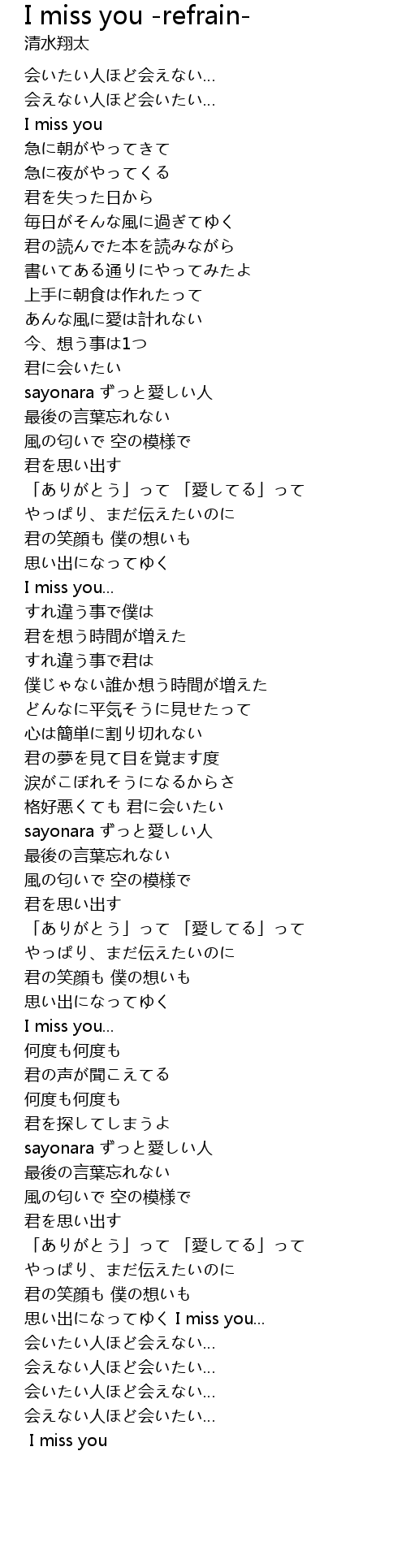 | [04:21.98] | 思い出になってゆく I miss you... |