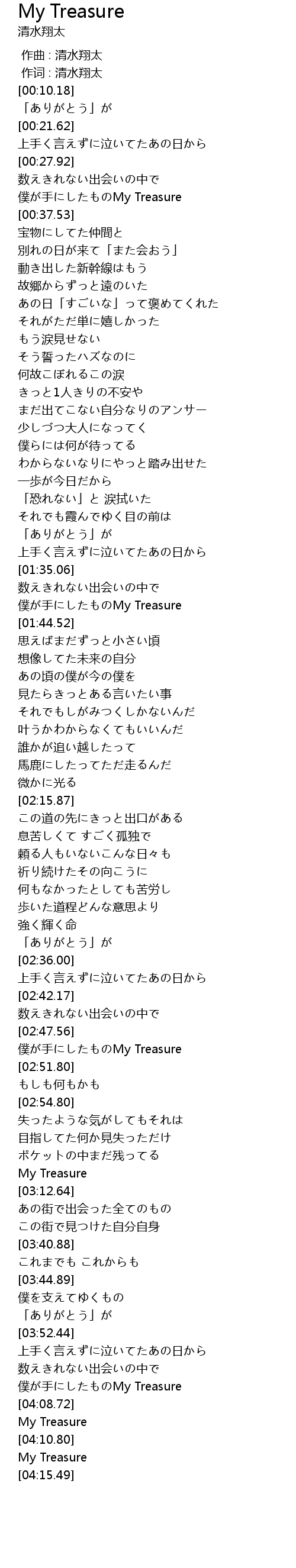 | [00:33.73] | 僕が手にしたものMy Treasure |