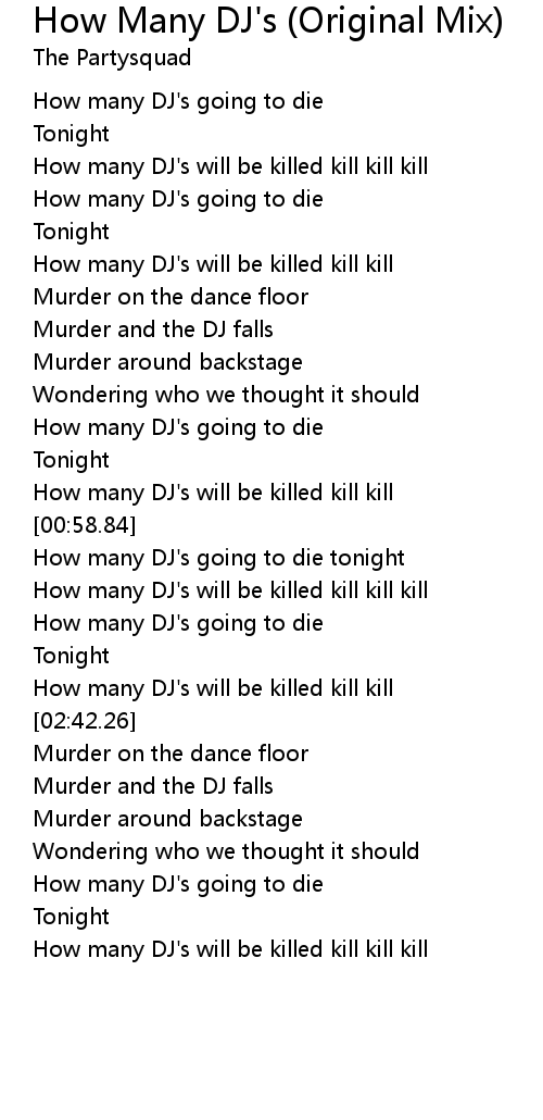 How many DJ's will be killed kill kill |
