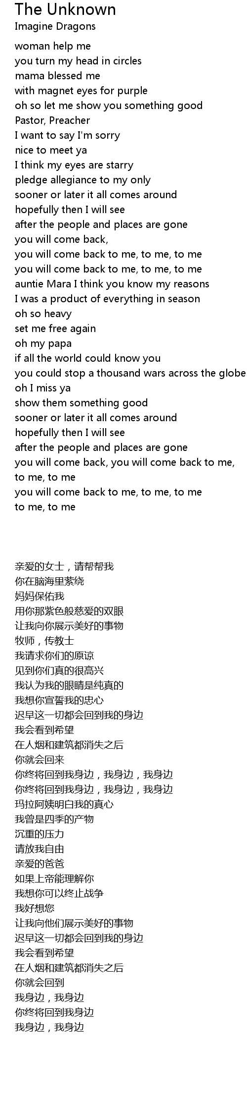 you will come back to me, to me, to me |