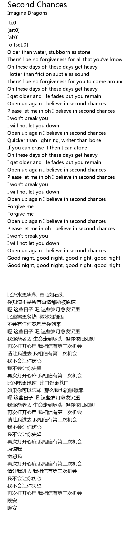 Open up again I believe in second chances |