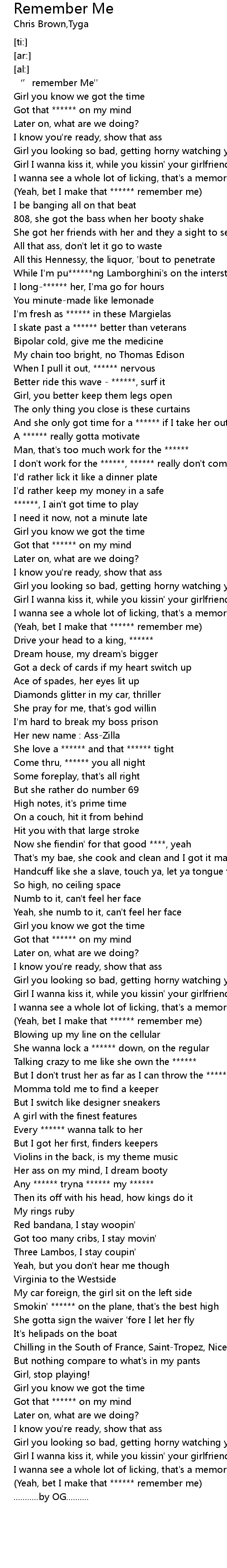 | [02:58.26] | (Yeah, bet I make that ****** remember me) |