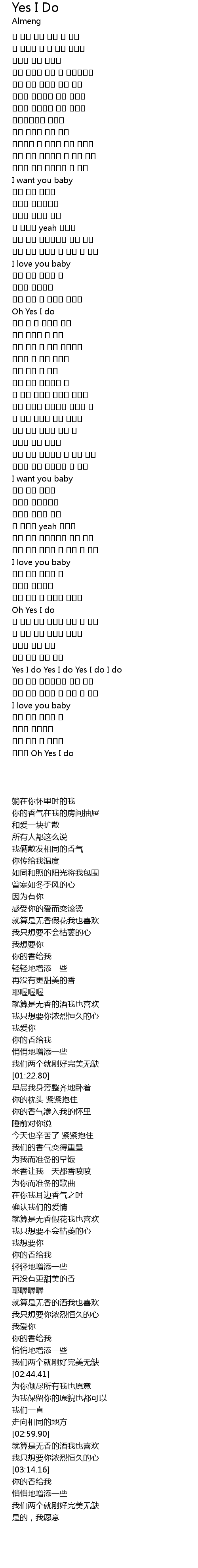 | [02:59.90] | Yes I do Yes I do Yes I do I do |