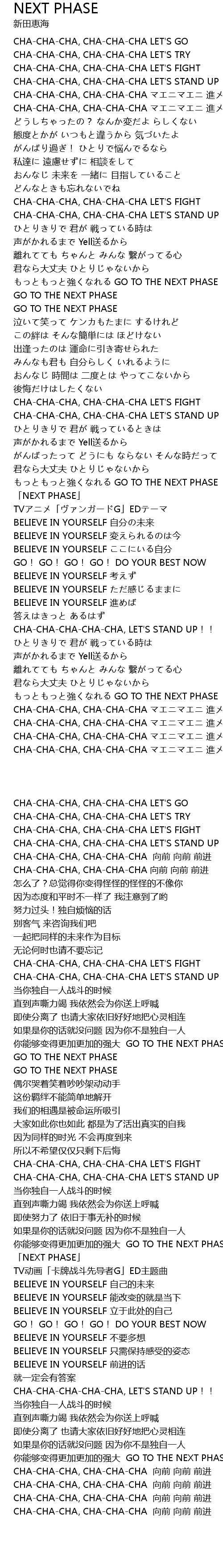 | [01:22.660] | もっともっと強くなれる GO TO THE NEXT PHASE |
