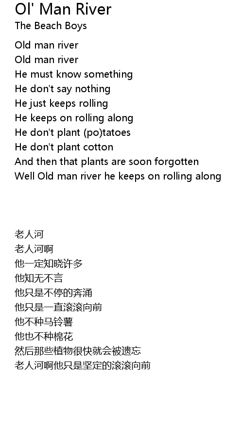 | [01:02.66] | Well Old man river he keeps on rolling along |