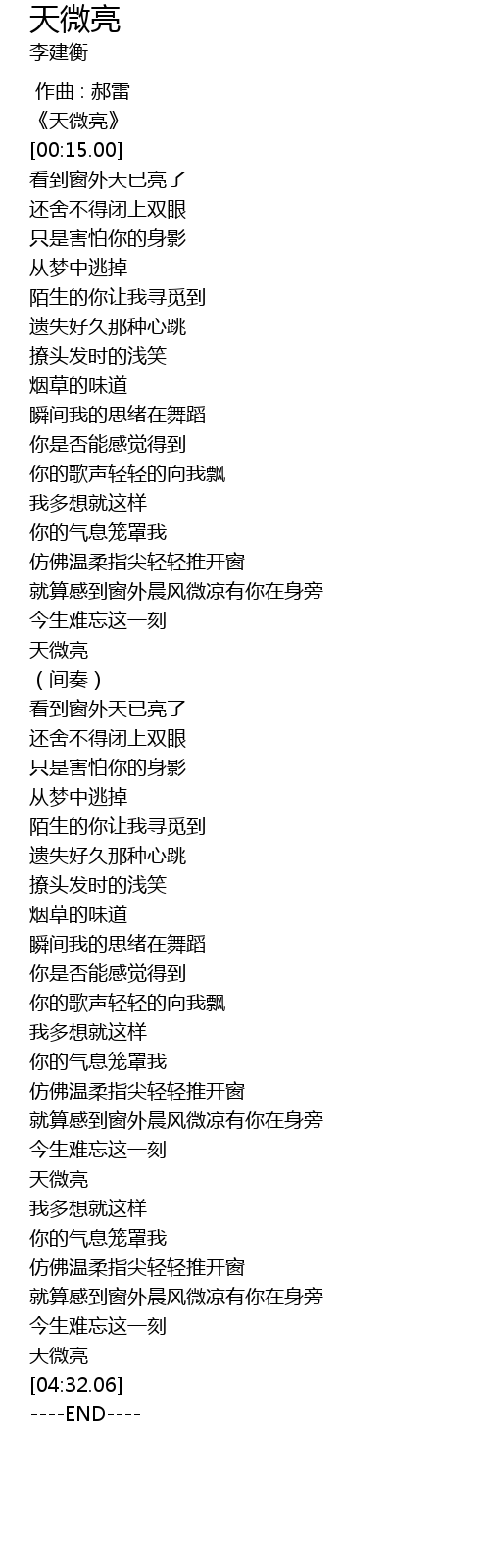 | [03:57.67] | 仿佛温柔指尖轻轻推开窗 |