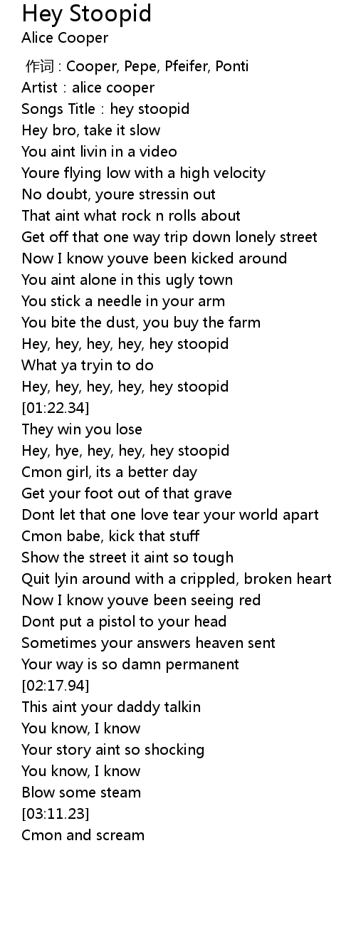 | [01:25.84] | Hey, hye, hey, hey, hey stoopid |