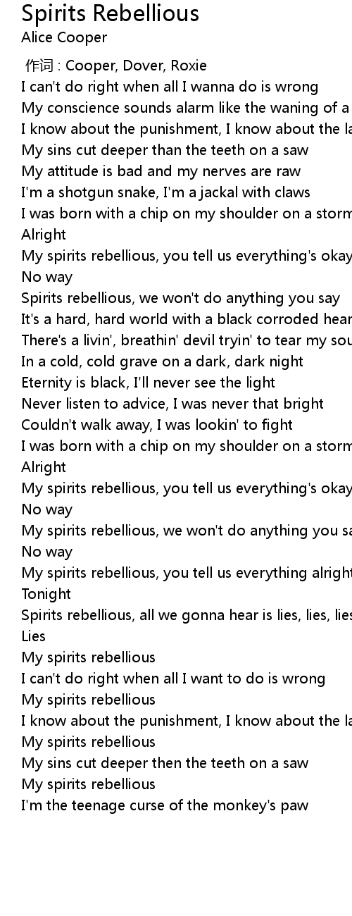 | [02:17.39] | My spirits rebellious, you tell us everything alright |