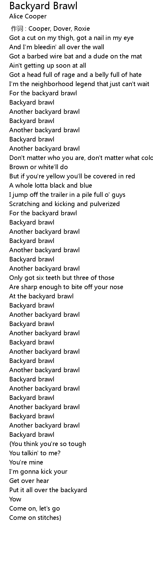 | [01:59.97] | Backyard brawl |