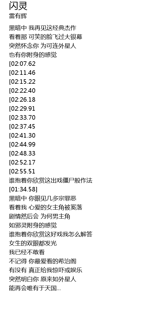 | [01:23.00][02:55.51] | 怀疑所有戏院椅背后 |