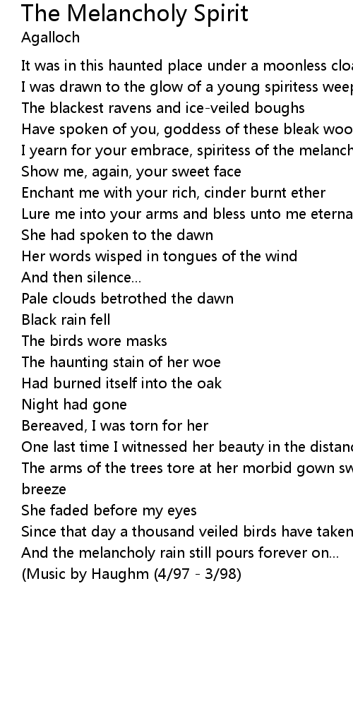I yearn for your embrace, spiritess of the melancholia |