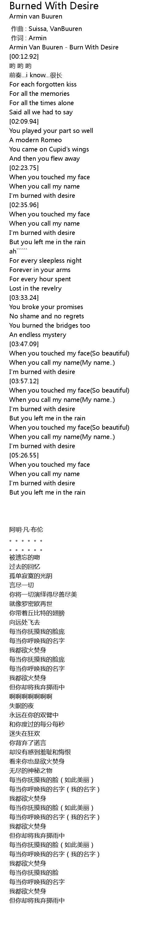 | [00:02.92] | Armin Van Buuren - Burn With Desire |