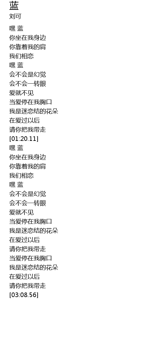| [02:59.63] | qǐng nǐ bǎ wǒ dài zǒu |