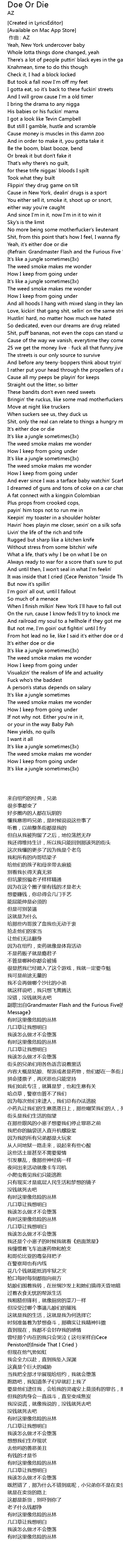 | [03:32.513] | From hot lead no lie, like I said it' s either doe or die... |