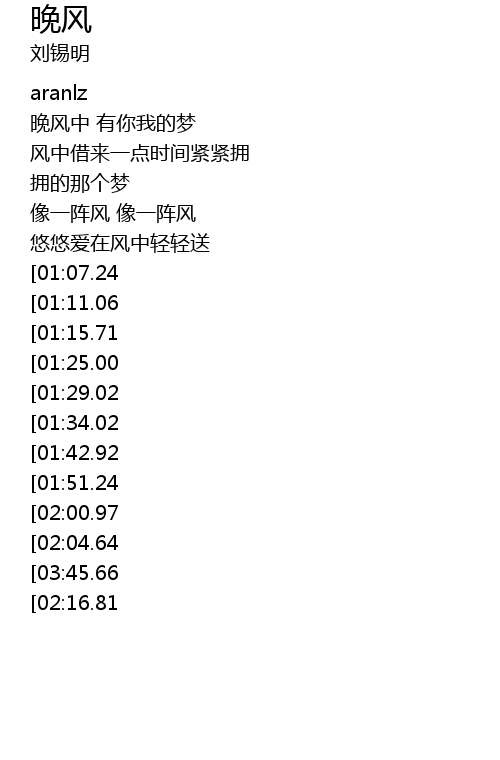 | [03:18.91][01:42.92] | 今晚的风和明天的梦 |