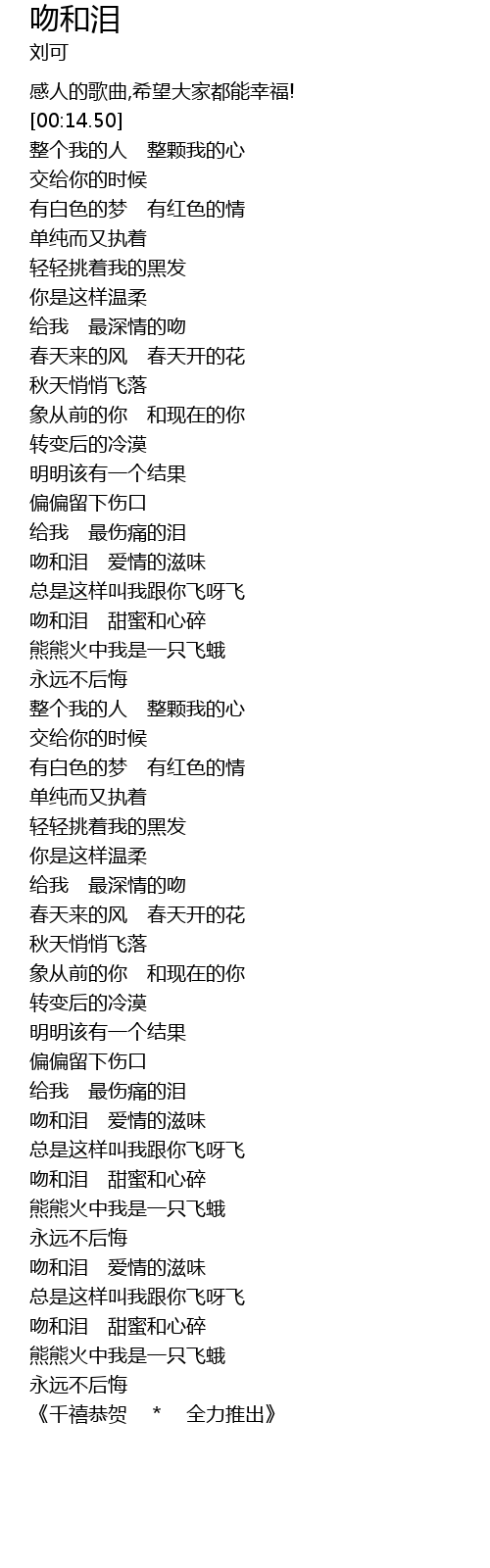 | [00:00.00] | 感人的歌曲,希望大家都能幸福! |