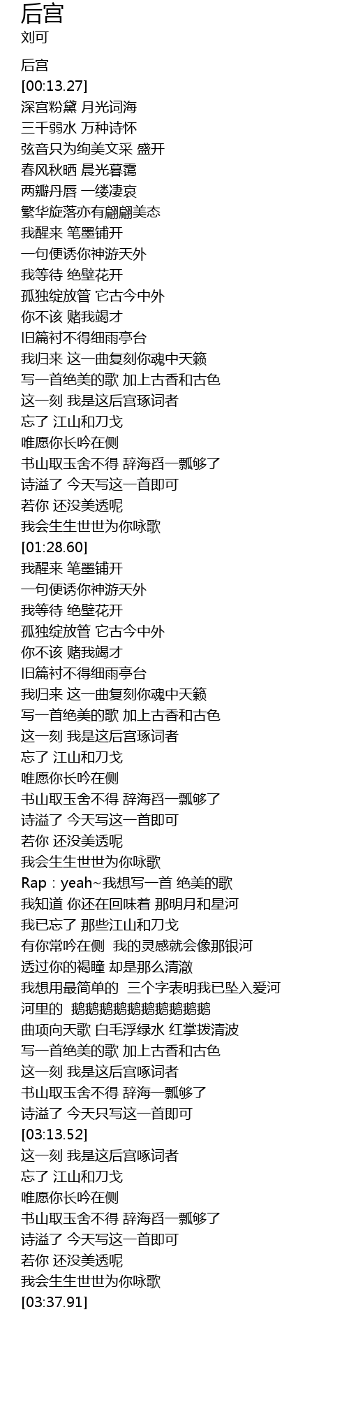 | [03:16.11] | 这一刻 我是这后宫啄词者 |