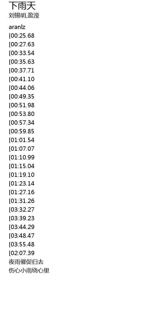 | [03:04.38][01:07.07] | 在某雨夜我心爱别离 |