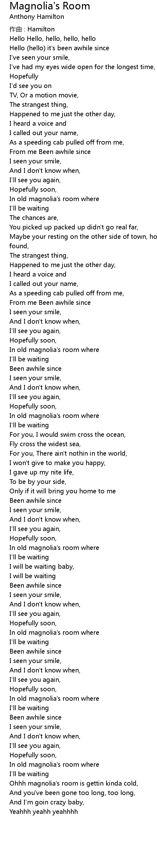 | Ohhh magnolia's room is gettin kinda cold, | |