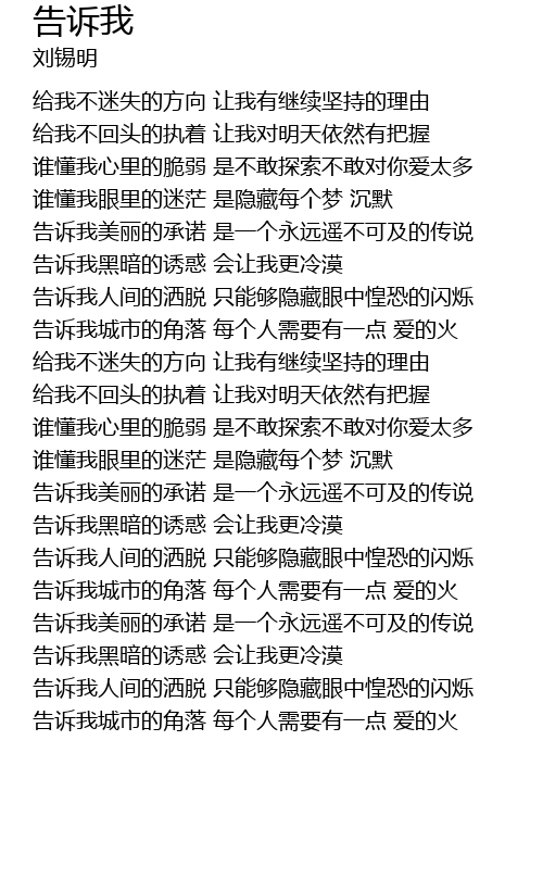 | [00:25.43] | 给我不迷失的方向 让我有继续坚持的理由 |