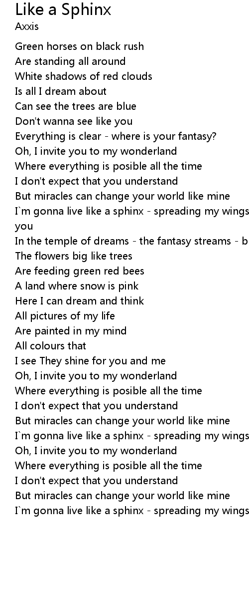 I`m gonna live like a sphinx - spreading my wings - let miracles rain down on you |