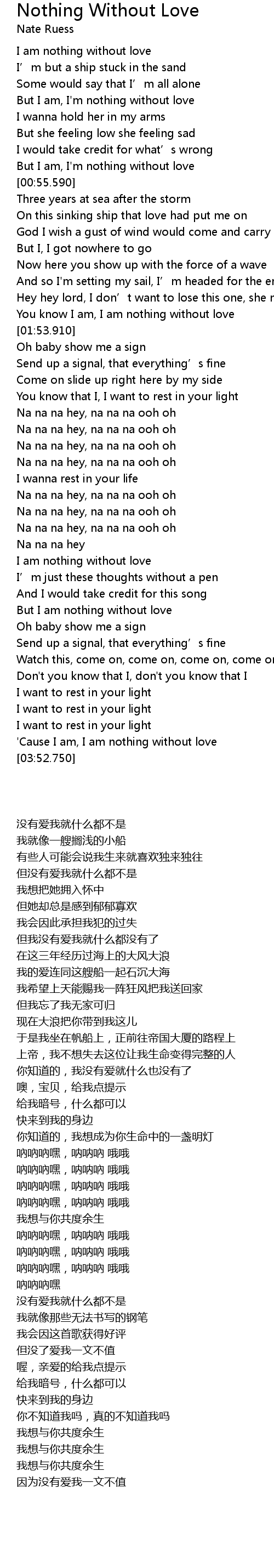 | [02:57.480] | But I am nothing without love |