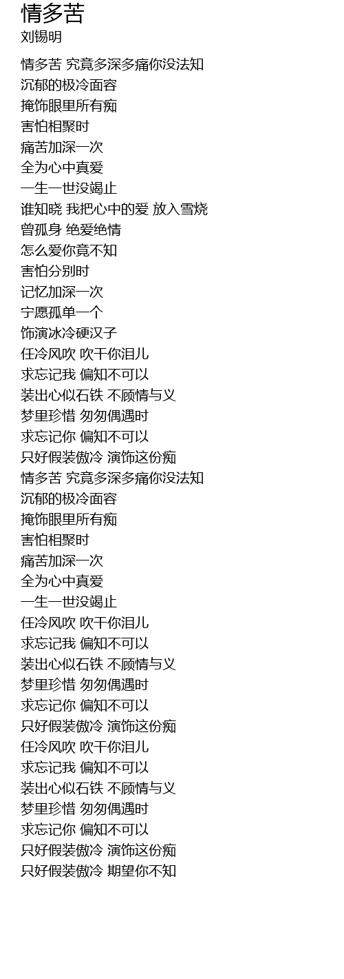 | [00:31.06] | 情多苦 究竟多深多痛你没法知 |