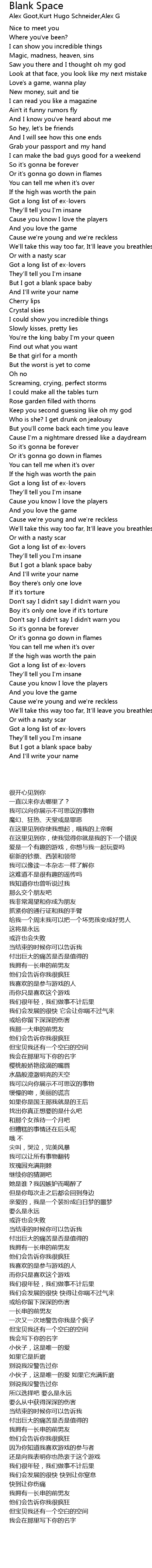 But I got a blank space baby |