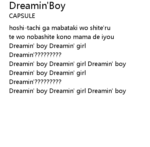 | Dreamin' boy Dreamin' girl Dreamin' boy |