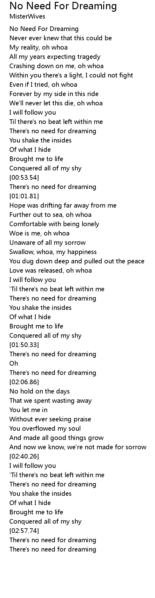 There's no need for dreaming |