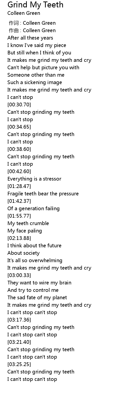 | [00:01.000] | zuò qǔ : Colleen Green |