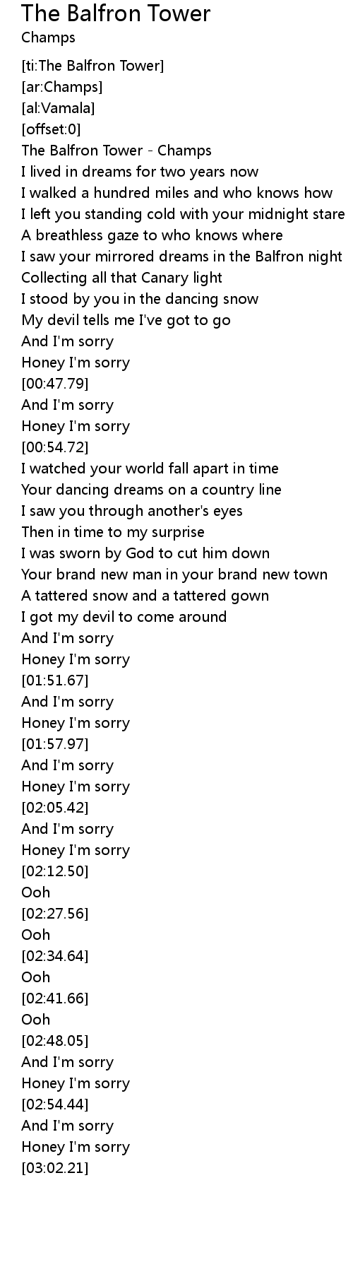 | [00:27.60] | I saw your mirrored dreams in the Balfron night |