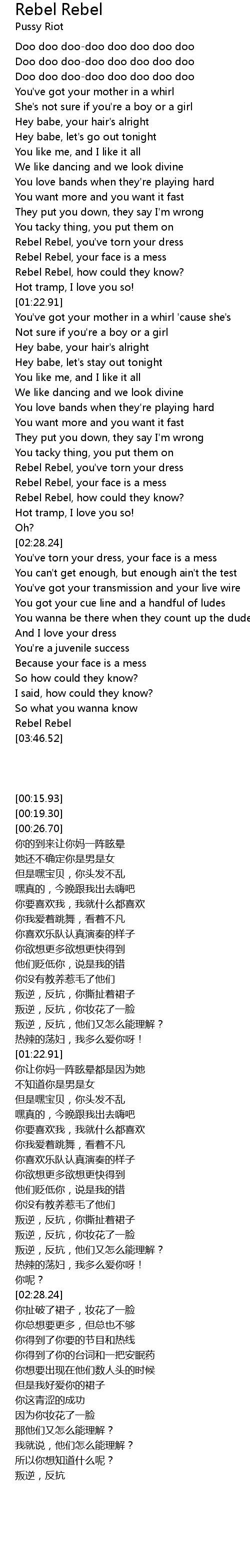 Rebel Rebel, you've torn your dress |