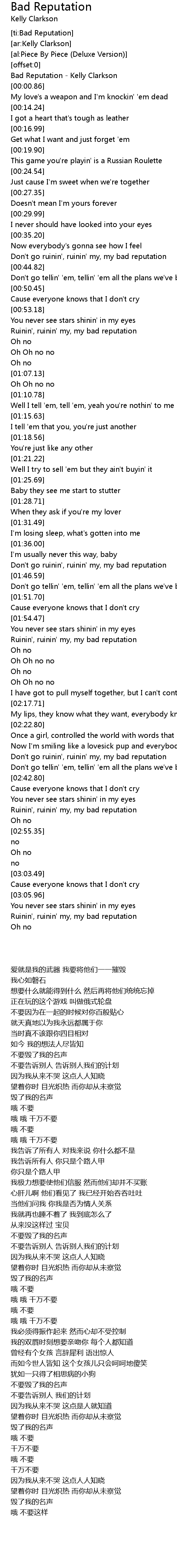[00:00.51] Bad Reputation - Kelly Clarkson