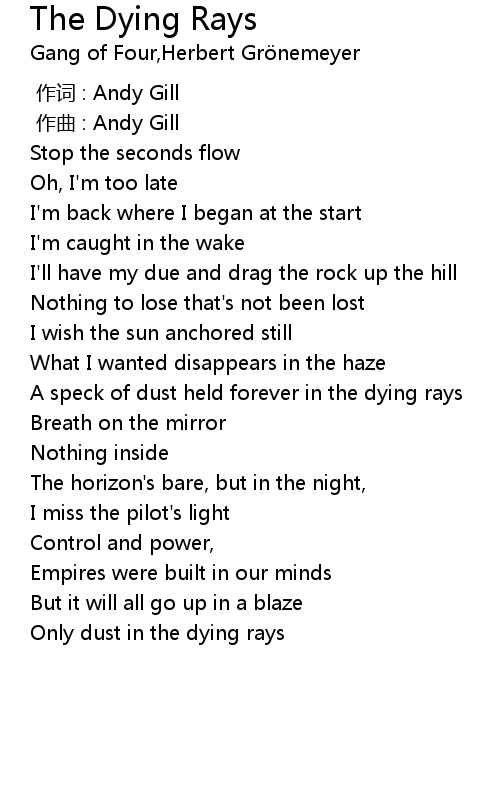 | [00:01.000] | zuò qǔ : Andy Gill |