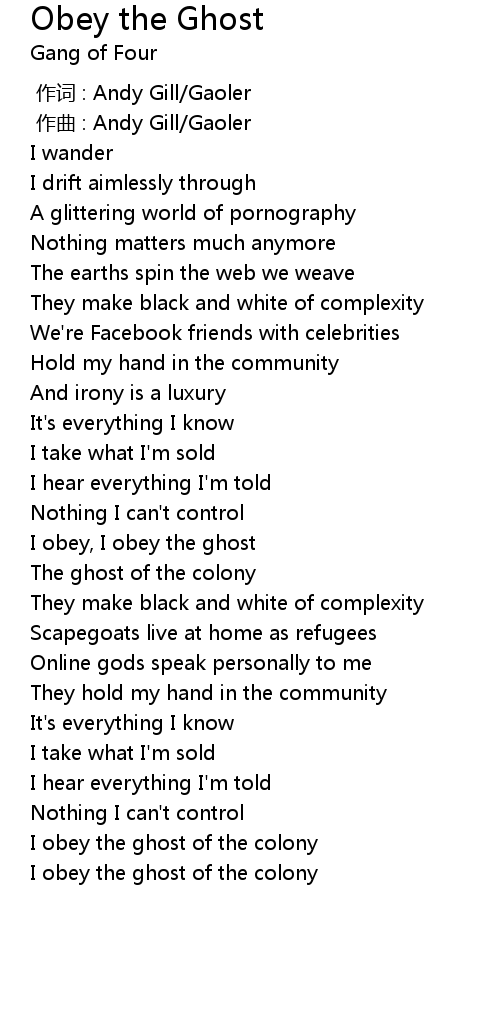 | [00:01.000] | zuo qu : Andy Gill Gaoler |