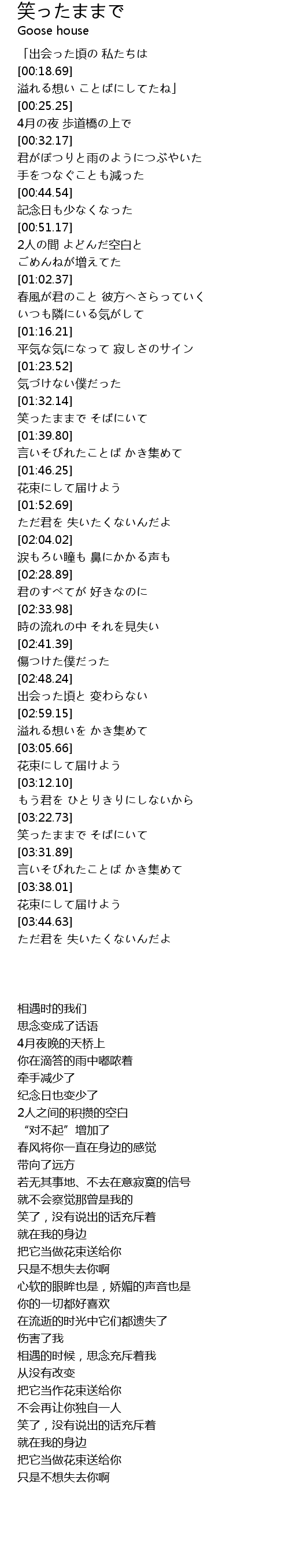 | [03:26.45] | 笑ったままで そばにいて |