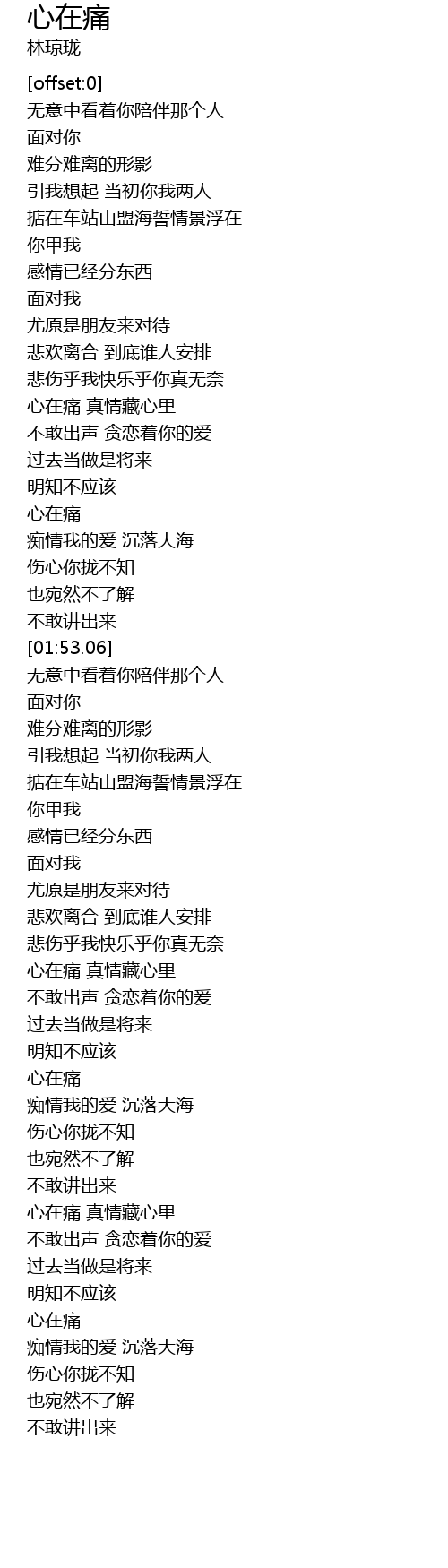 | [03:05.89] | xīn zài tòng zhēn qíng cáng xīn lǐ |