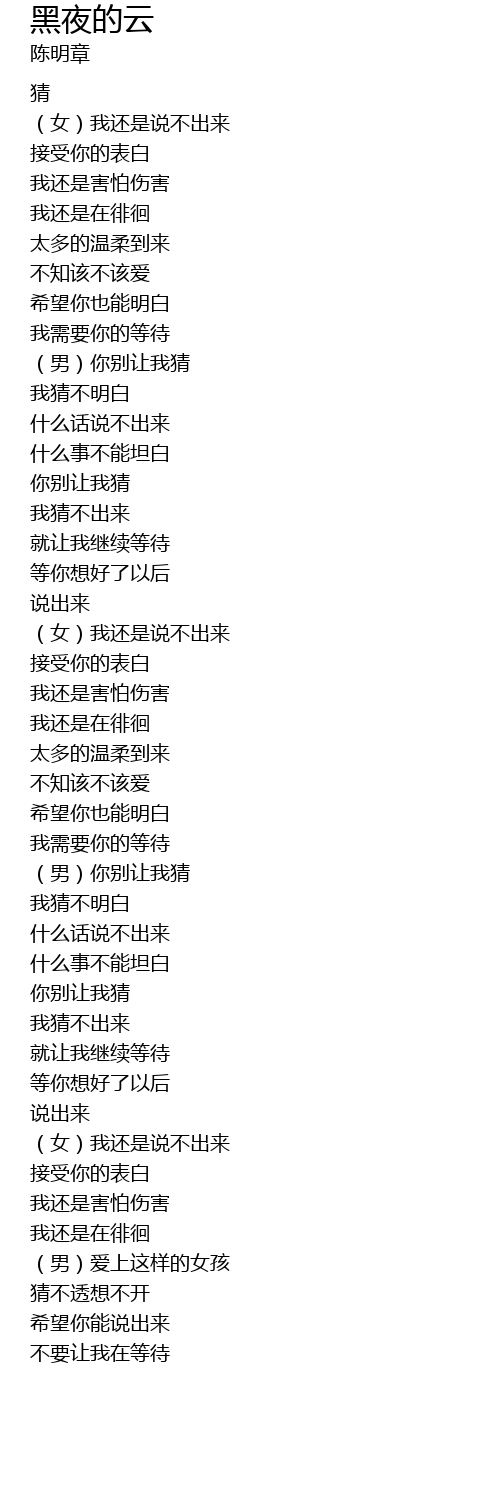 | [00:46.84] | (男)你别让我猜 |